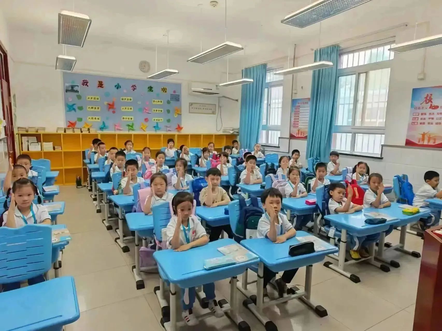 同学们坐姿端正,听课认真。琅琅读书声将附小的课堂瞬间点亮,握起小小的铅笔,专注学习,相信在不久的将来,定能书写精彩的学习篇章。